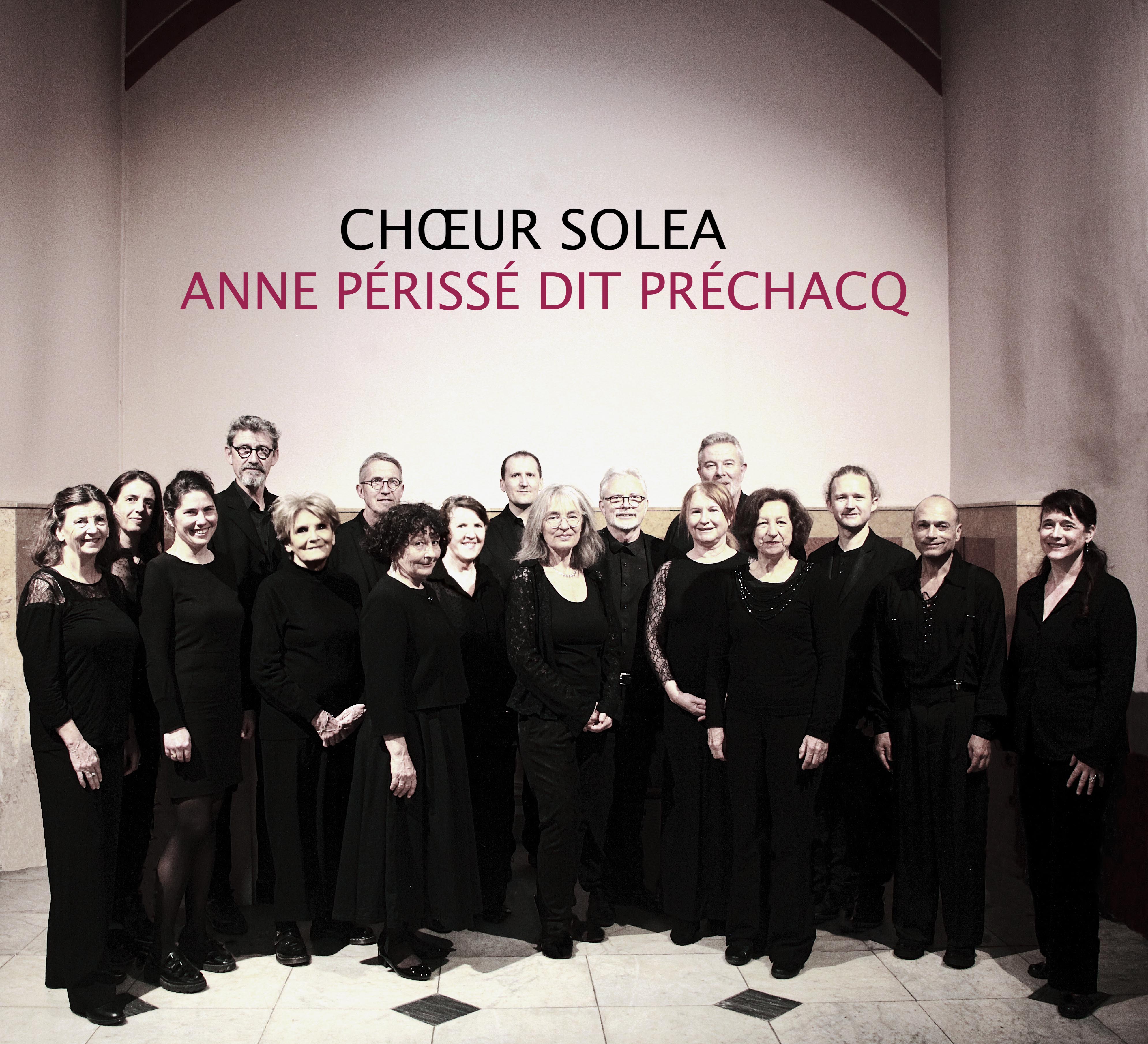 Créé en 2020 par Anne Périssé dit Préchacq après la pandémie de Covid, le chœur Solea est né de la volonté de former un chœur de qualité, capable de chanter des répertoires complexes et exigeants. Le chœur regroupe seize à vingt chanteurs, fins connaisseurs de la musique chorale et ayant une solide formation musicale et vocale.